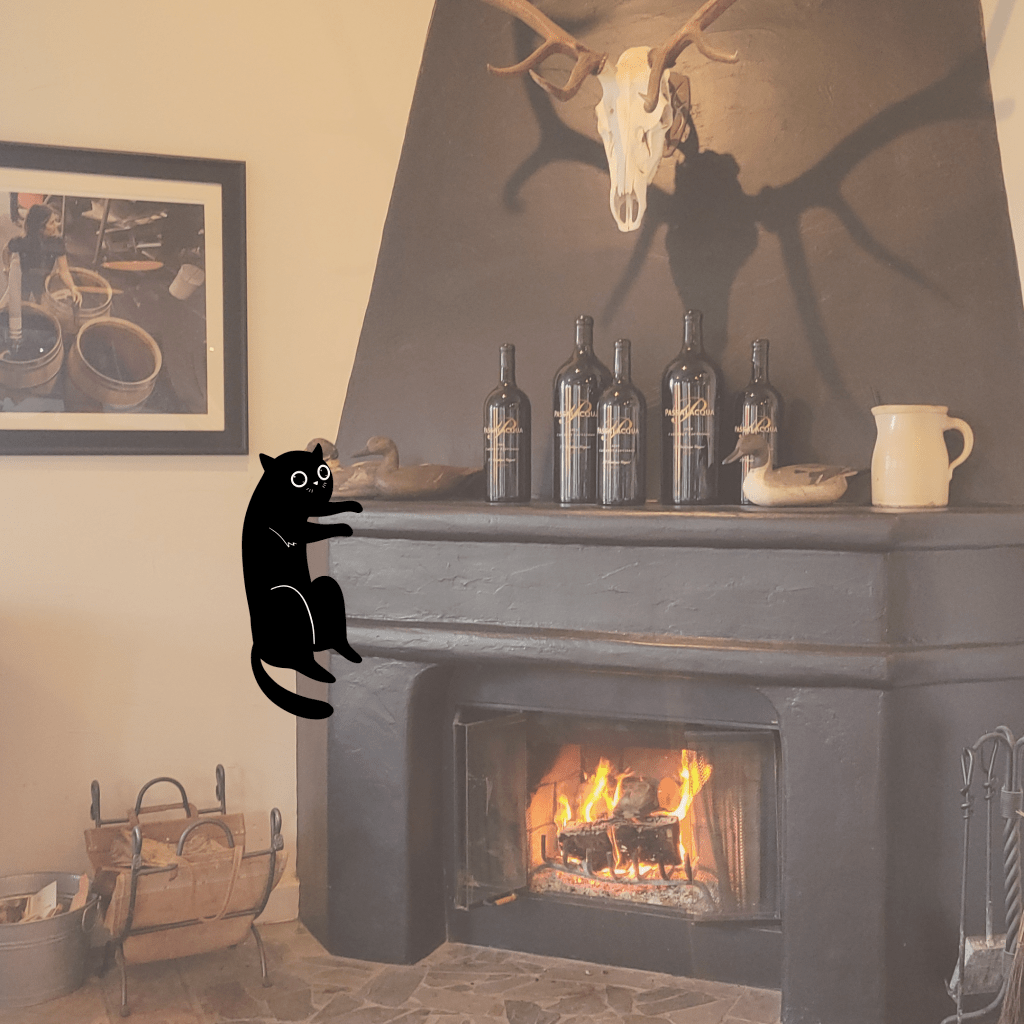 The tasting room is decorated like a rich friend cosplaying as middle-class. It has a cozy-cabin vibe comeplete with a crackling fireplace, worn-in leather couches, and Yeti water glasses.